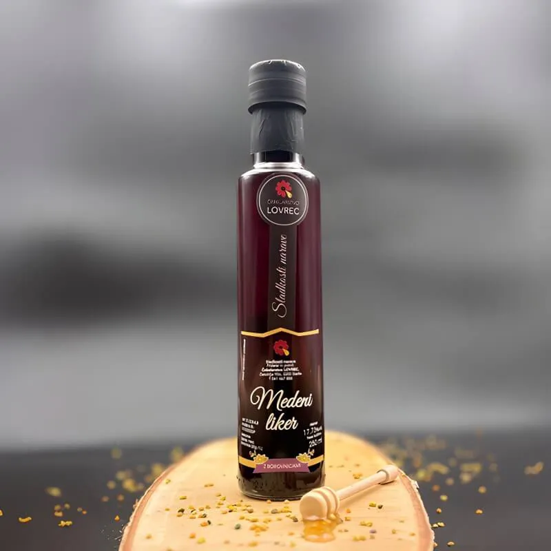 V naši ponudbi so tudi medeni likerji različnih okusov. Za naš medeni liker uporabljamo samo vrhunske sestavine. Likerji so narejeni na osnovi kvalitetnega sadnega žganja, cimeta, limone in akacijevega medu. Ponujamo vam tudi darilne vrečke za medeni liker, kar je več kot odlično darilo za vse priložnosti.