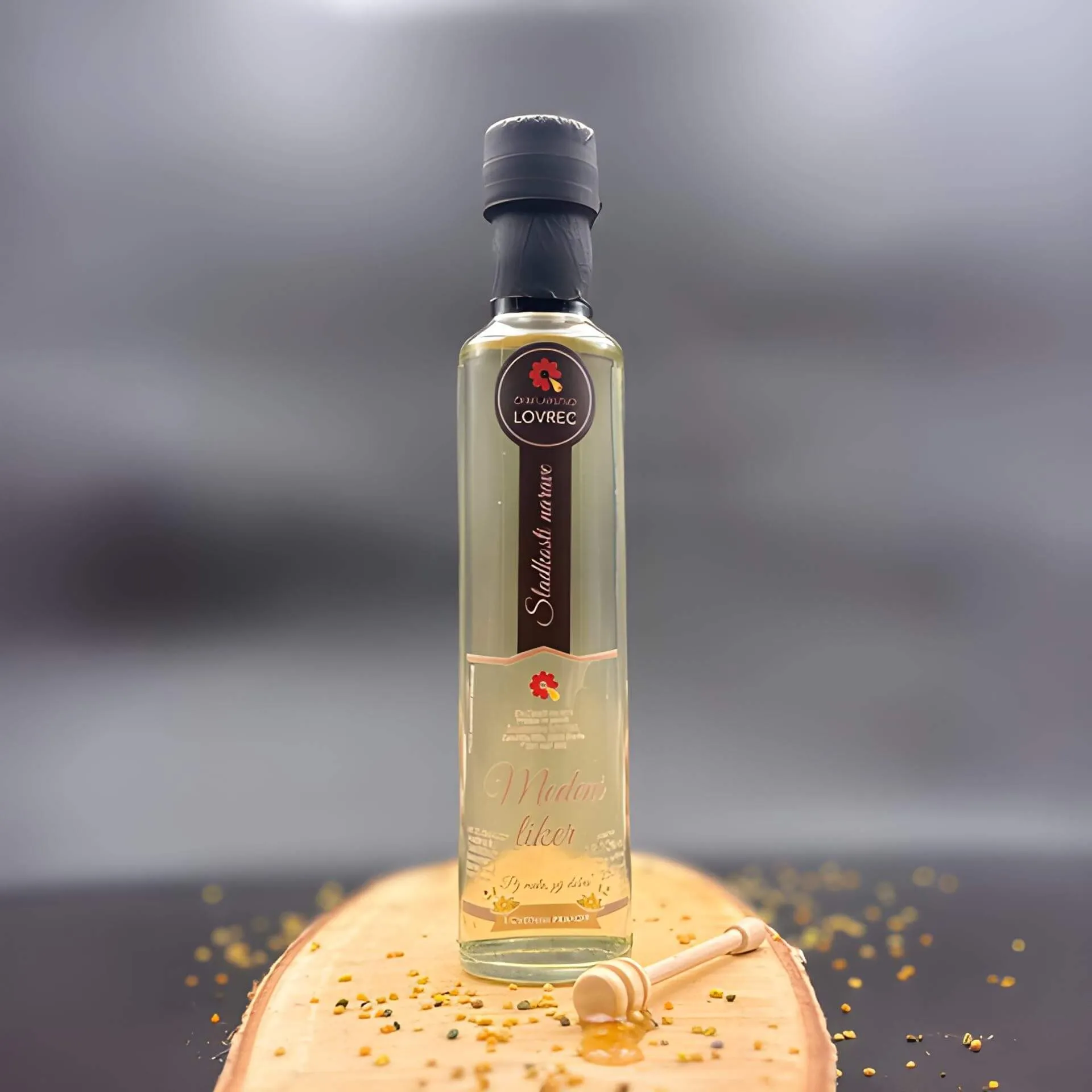 V našem čebelarstvu imamo medeni liker s cvetnim prahom v različnih pakiranjih (250ml, 750ml), medeni liker z borovnicami (250ml) in medeni liker s čokolado (250ml)