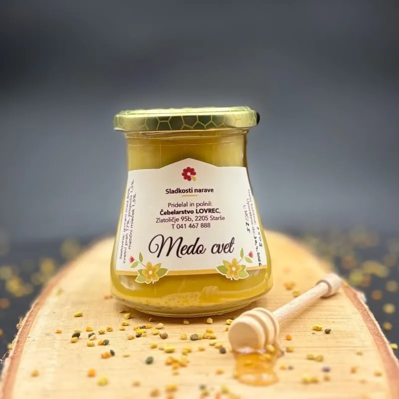 Naša najbolj prodajana mešanica. Medocvet je mešanica vseh čebeljih pridelkov. Sestavlja ga gozdni med, cvetni prah, propolis in matični mleček.