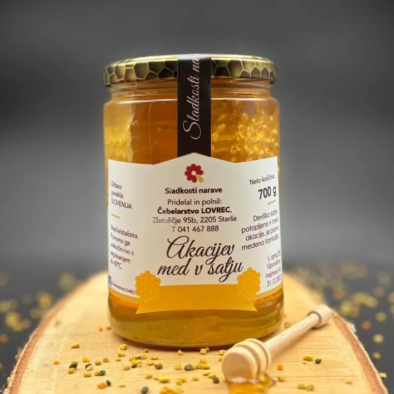 Vosek proizvajajo mlade čebele in z njim gradijo satje. Ko ga napolnijo z akacijevim medom je to zelo okusna in za oči mikavna sladica