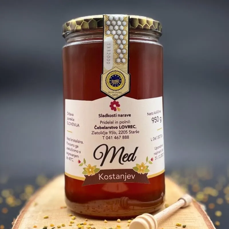 Kostanjev med je za ljubitelje močnega, grenkega okusa. Je eden izmed manj sladkih medov. Barva kostanjevega medu je temno rjava, v kolikor je zraven kostanja medila tudi lipa, je lahko kostanjev med svetlejše rjave barve. Kostanjevo pašo izkoriščamo na Pohorju in Kozjaku. Kristalizira zelo počasi