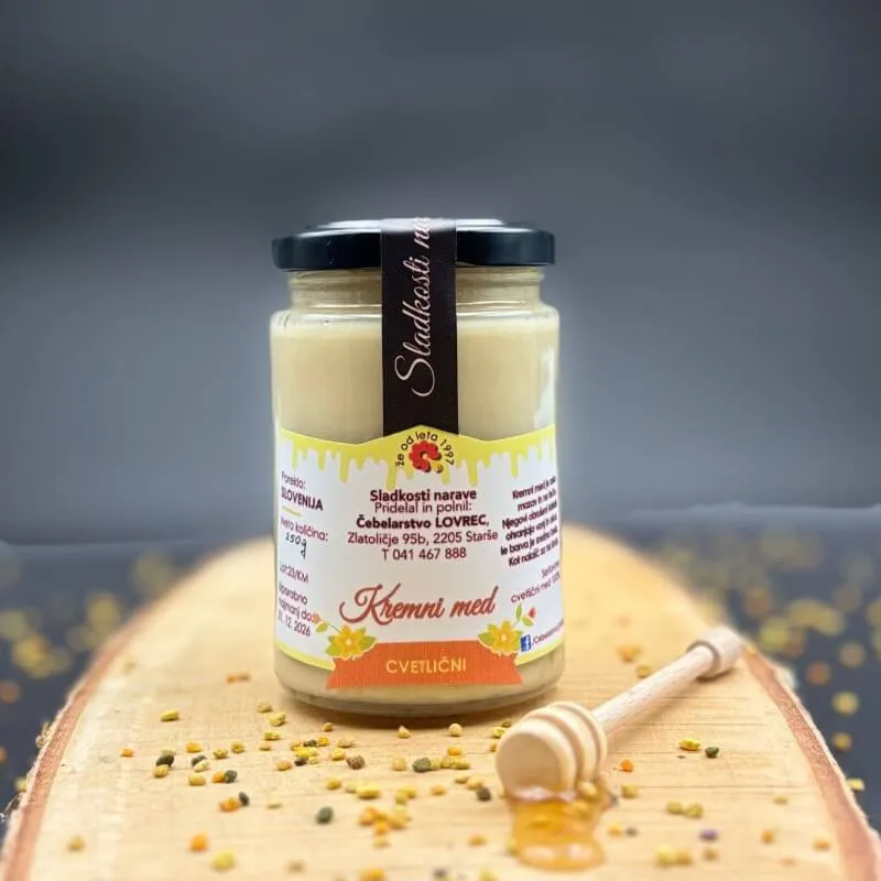V našem čebelarstvu ponujamo navadni kremni med, za sladkosnede pa smo naredili tudi kremni med z dodatki (kremni med borovnica-malina, čokolada-lešnik, cimet-limona)
